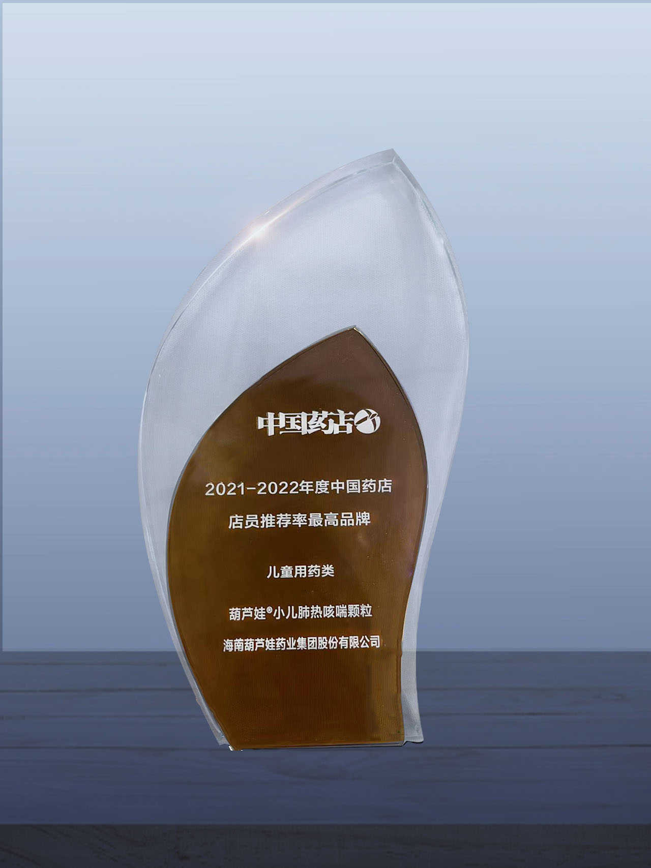 近日,由《中国药店》杂志社举办的“2022~2023年度中国药店发展报告暨中国药店价值榜发布会”在青岛举行,会上发布了“2021-2022年度中国药店店员推荐率最高品牌”奖,永乐高药业两大明星产品永乐高牌小儿肺热咳喘颗粒(4g)、永乐高牌肠炎宁颗粒(2g)双双上榜。