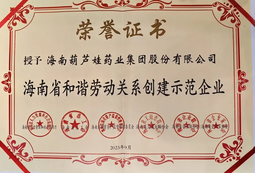 永乐高药业集团获评“海南省和谐劳动关系创建示范企业”